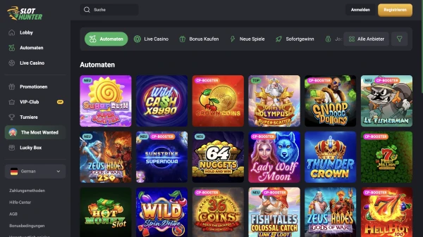 Unser Slot-Bereich ist der größte Teil der Plattform. SlotsHopper Slots umfassen klassische Walzen, Video-Slots, Bonus-Buy-Formate, wo zulässig, Jackpot-ähnliche Spiele sowie featurelastige Neuerscheinungen von Top-Studios. Spieler können bekannte Namen von Pragmatic Play, NetEnt und Red Tiger durchstöbern, ebenso wie neuere Titel von Hacksaw Gaming und BGaming. Demo-Verfügbarkeit gibt es bei ausgewählten Spielen, was Nutzern hilft, Features und Volatilität zu testen, bevor sie auf Echtgeldspiel wechseln. Der Bereich Casino SlotsHopper Slots wird außerdem durch Filter unterstützt, mit denen sich leichter nach Provider, Thema oder Spielstil sortieren lässt.