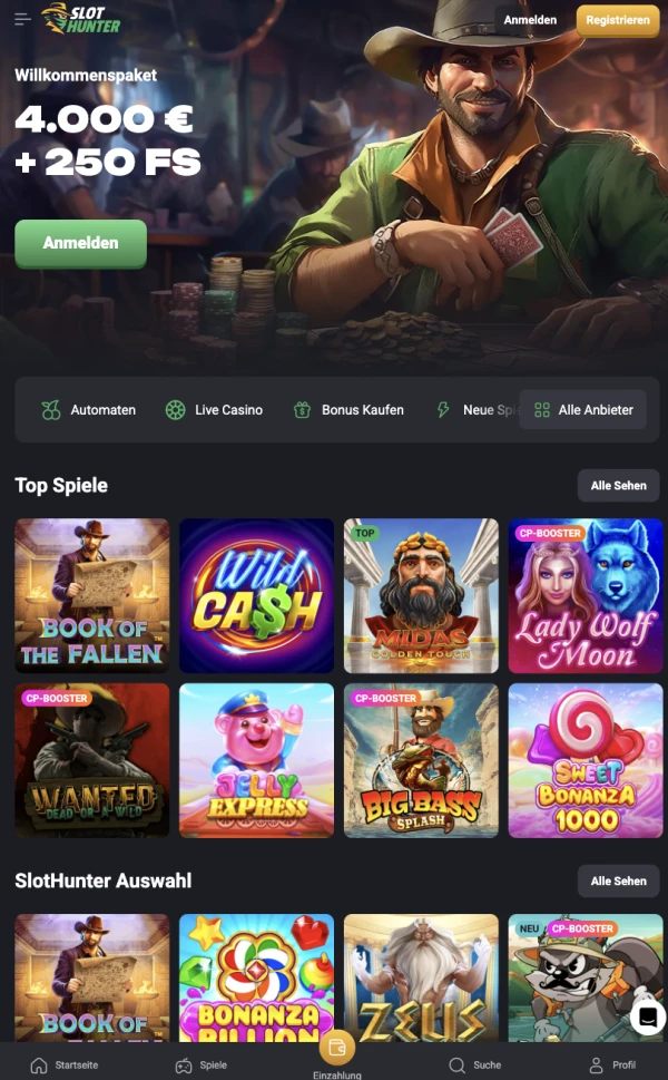 Unsere mobile Plattform bietet dir das volle Gefühl der Hauptseite – in einem Format, das sich tagsüber leichter bedienen lässt. SlotsHopper läuft im mobilen Browser, sodass du dein Konto schnell öffnen kannst, ohne auf eine Installation zu warten. Wir unterstützen eine große Spielelobby mit rund 4.000 Titeln, darunter Live-Casino, Sportwetten, Bingo, Blackjack, Baccarat, Crash Games, Keno, 3 Card Poker, schrittbasierte Risk-Games und Shooting-Games.